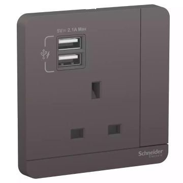 AvatarOn, 2 USB charger + switched socket, 3P, 13A, Dark Grey