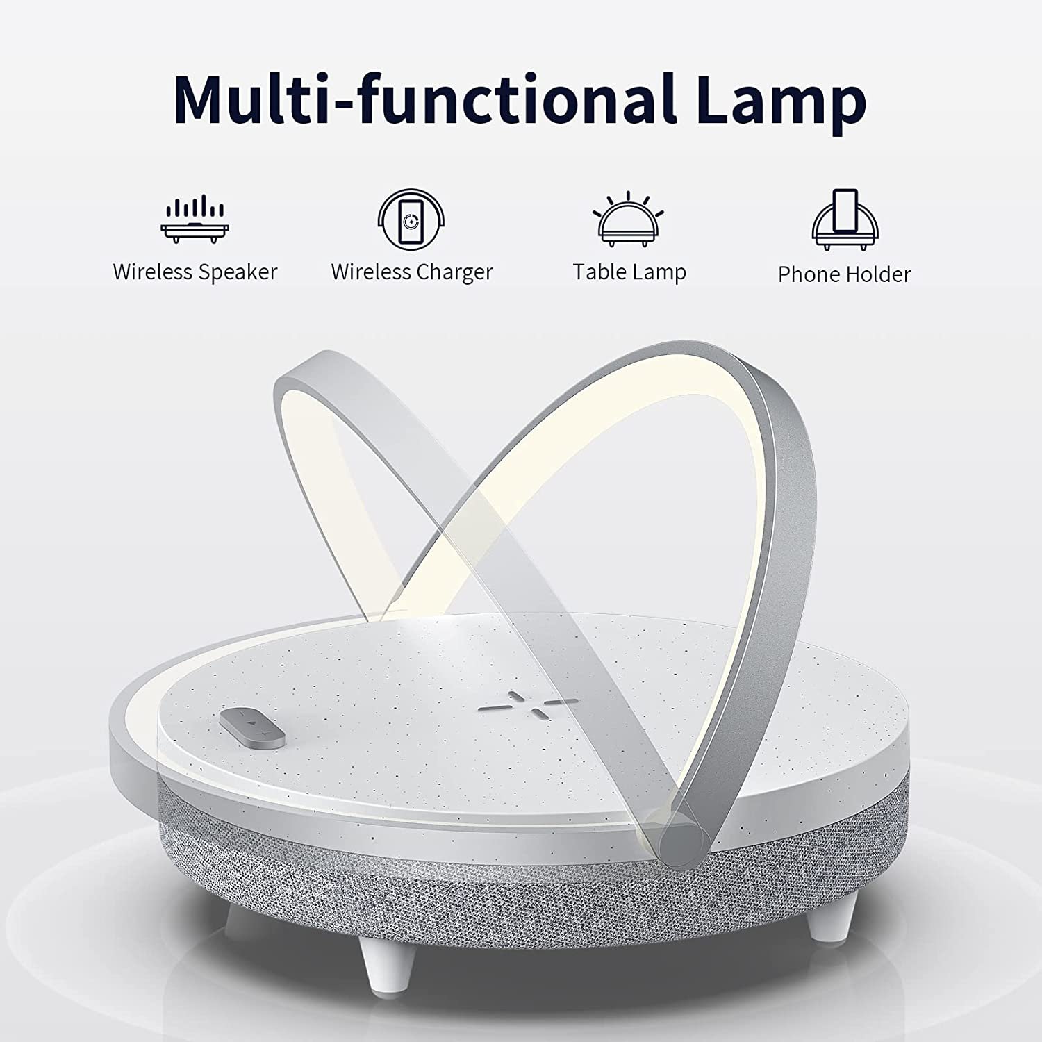LED Night Light, Music Bedside Lamp with Wireless Charger, 4 in 1 Touch Lamp, Portable Bluetooth Speaker, Phone Holder