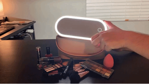 4.Touching LED light makeup mirror, light touching to turn the light on/off. Long touching to adjust the brightness of the light.