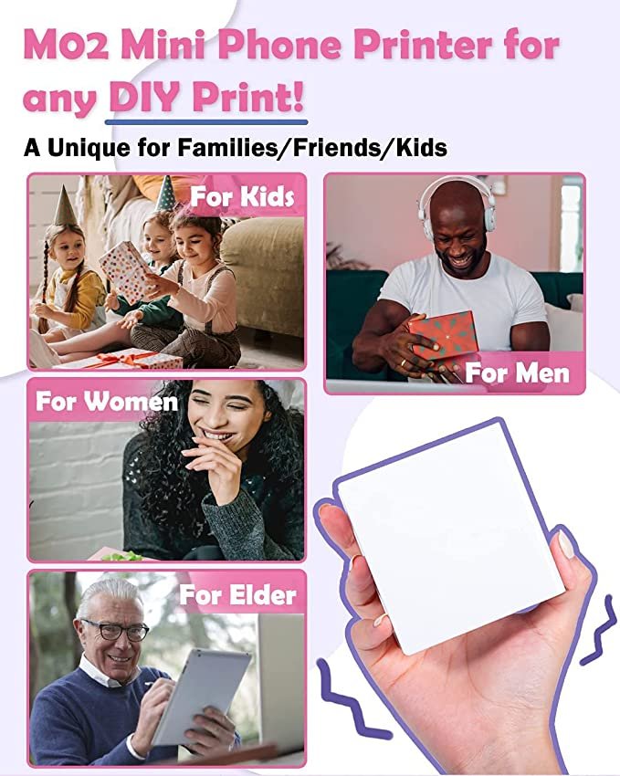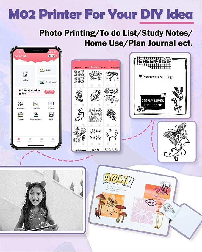 • Multipurpose- M02 portable mobile printer is better for company business, work plan, office assistant, memo, meeting notes, study notes, shopping list. Suitable for office, students, amateur archivists, treasure moms etc.