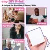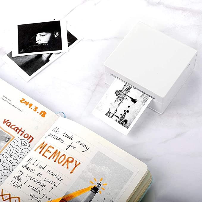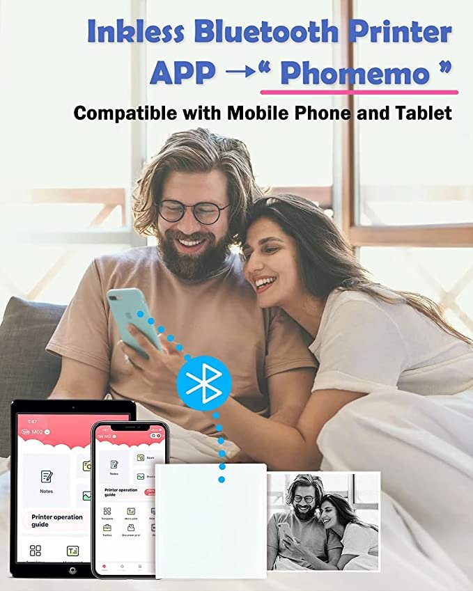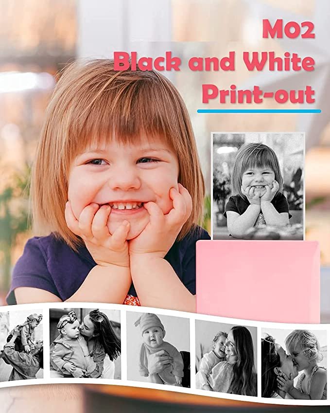 • Pocket Mobile Printer with Powerful APP- one-click printing, saving time and effort, M02 can print photos and text instantly, app offers variety of fonts, filter effects and themes, makes your black and white image more HD. M02 mini printer is a funny printer, but not a Camera.