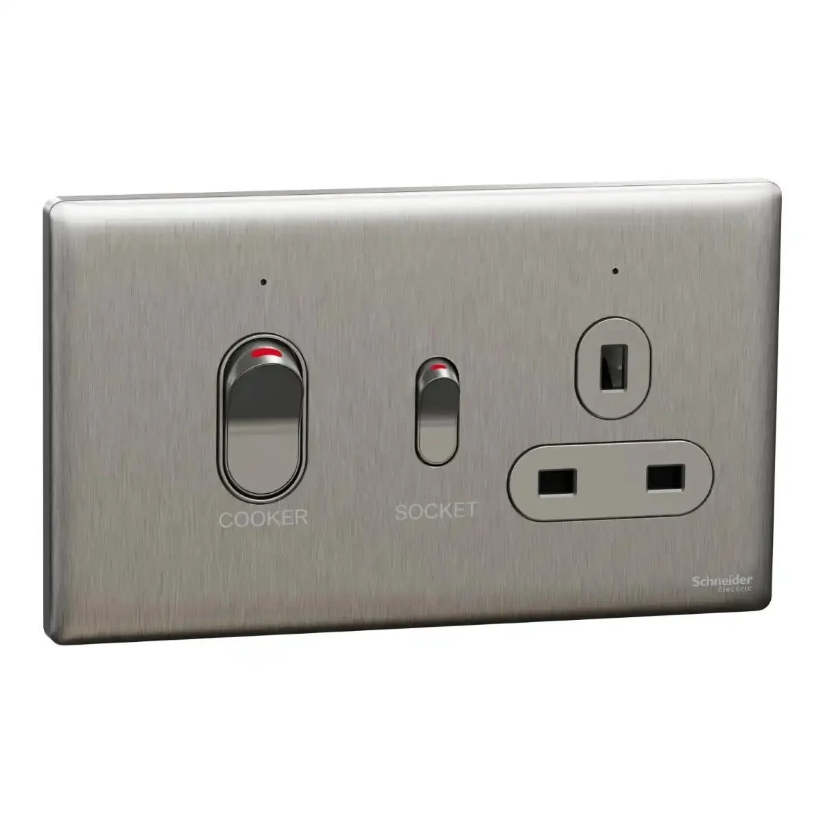 Cooker control unit, Unica X, 45A, 250V, 1 gang, 2 pole, Stainless Steel