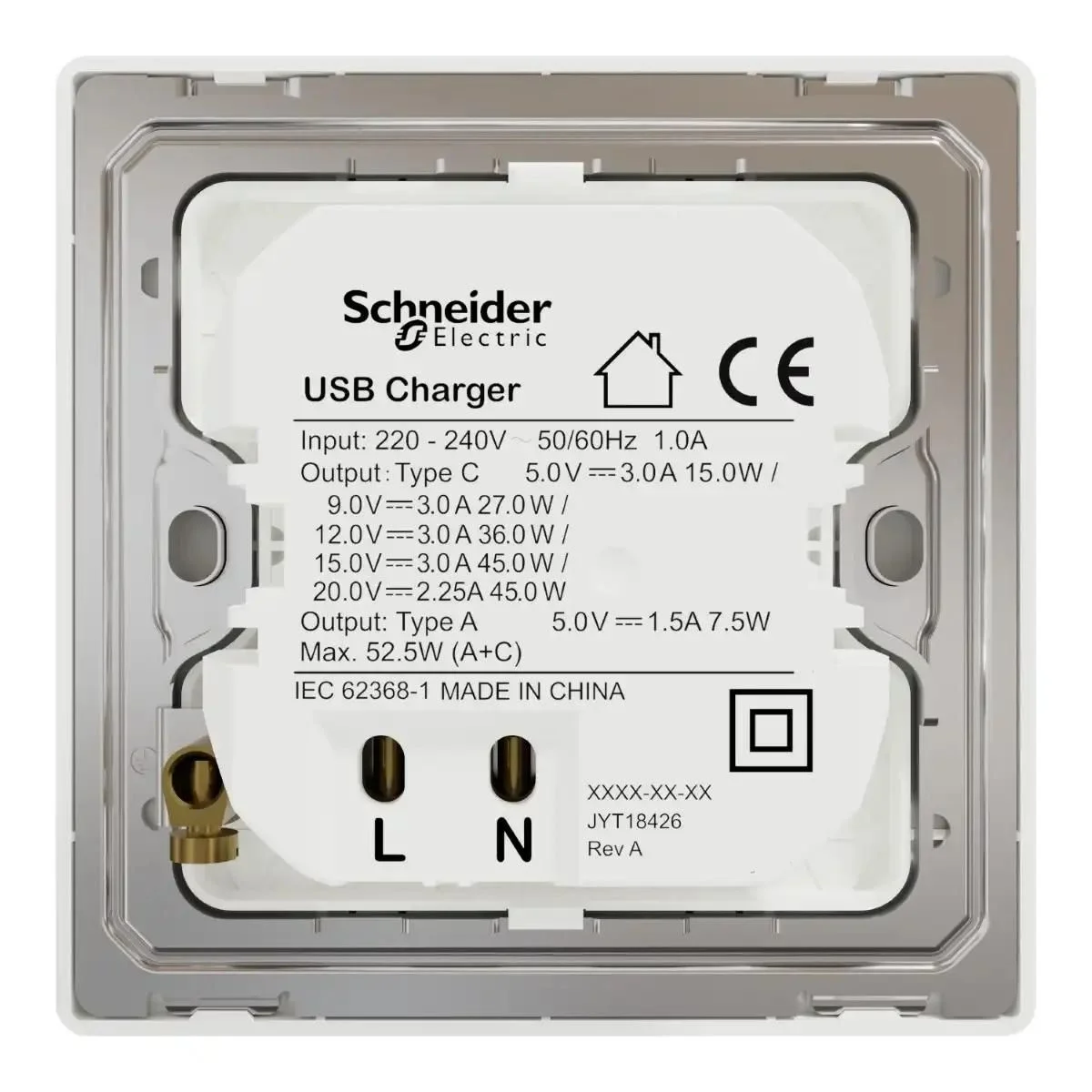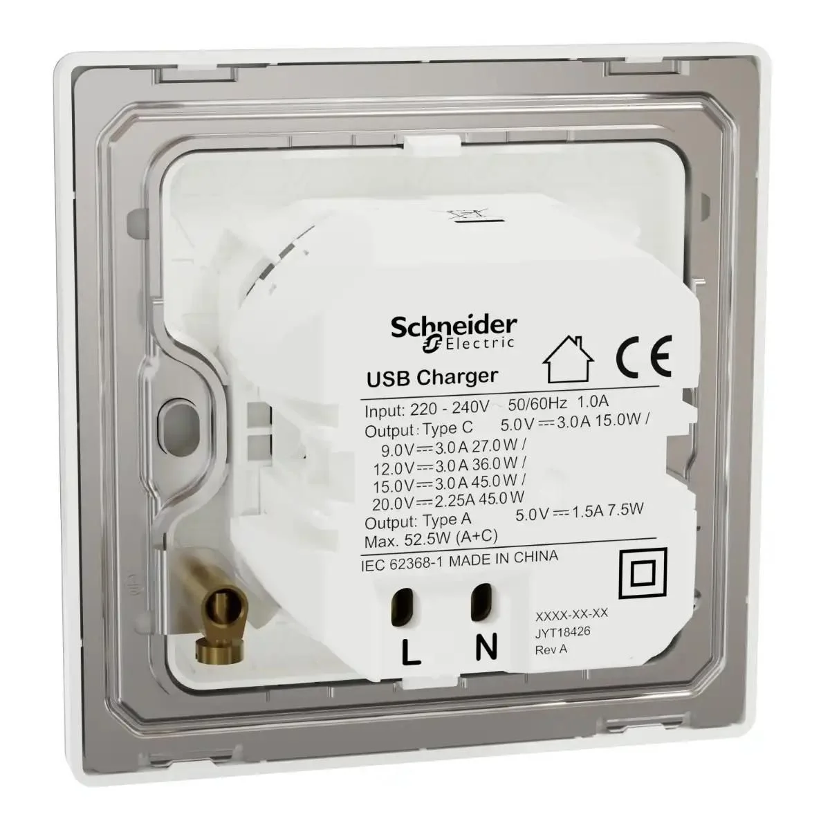 Schneider Double USB Charger, Unica X, 45W, type A+C, Painted White ,NUX32ACQUSB_PW