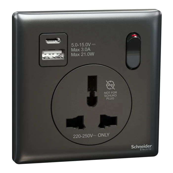 13A Inter’l SW Skt w USB A+C 21W, DG