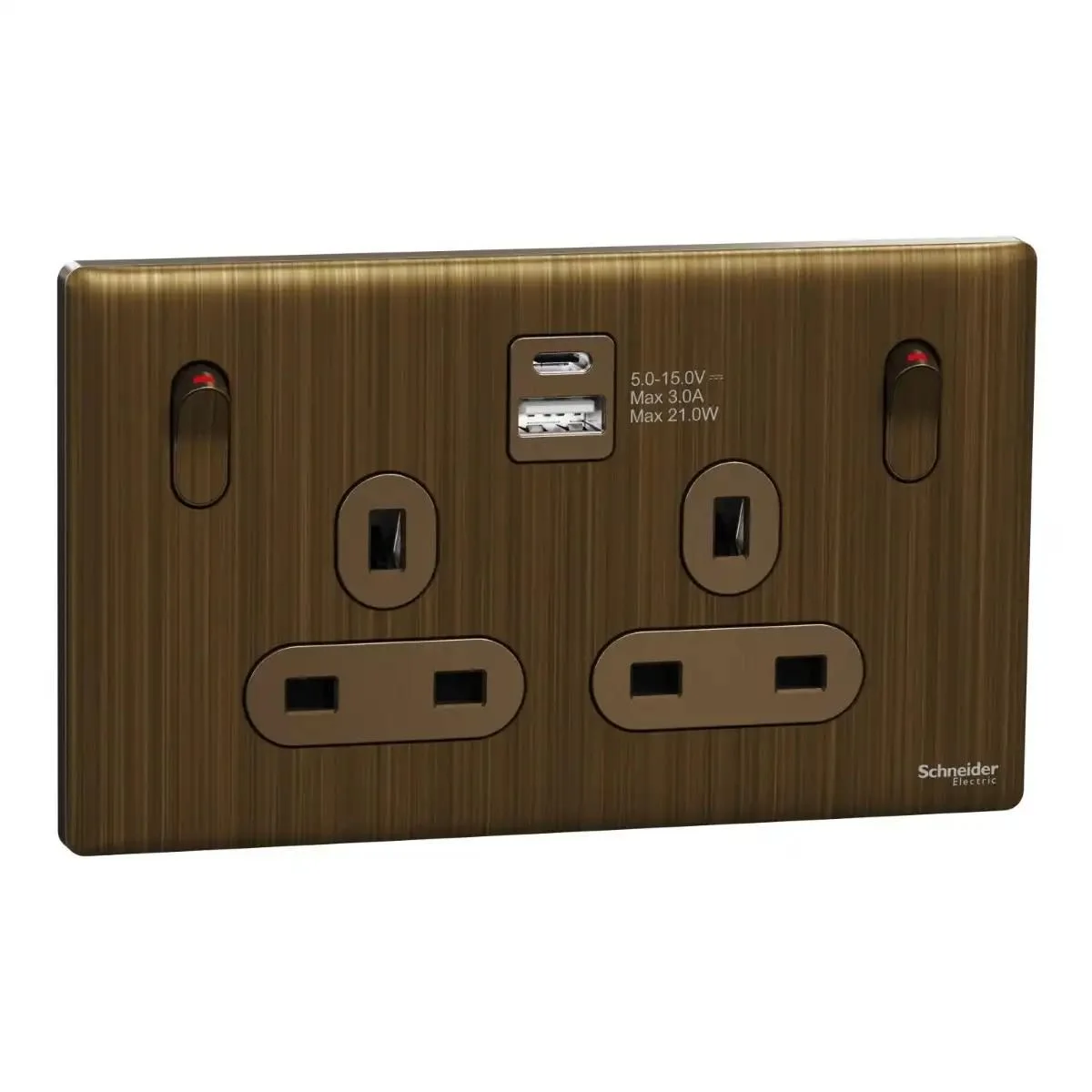 Schneider Switched socket with USB, Unica X, 13A, 250V, 2 pole, type A+C, 21W, Antique Bronze ,NUX25DACQUS_AB