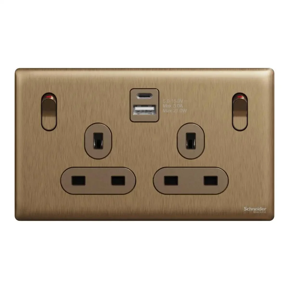 Switched socket with USB, Unica X, 13A, 250V, 2 pole, type A+C, 21W, Dark Bronze