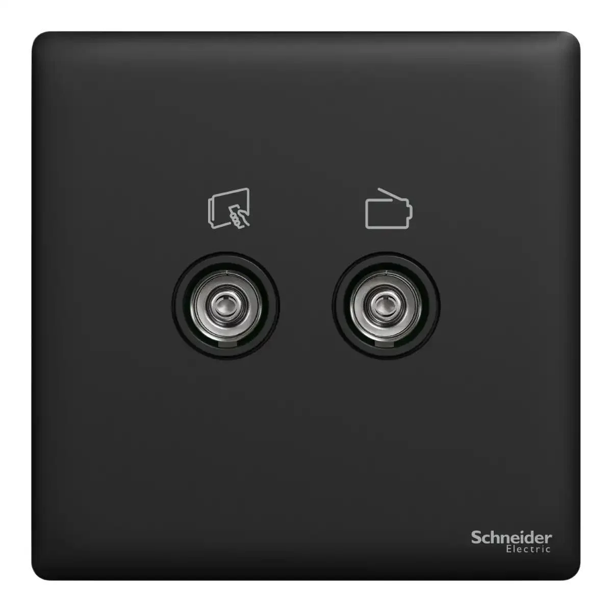 Schneider TV/FM socket, Unica X, 2 gangs, with TV-R module,Jet Black ,NUX32TVFMM_JB